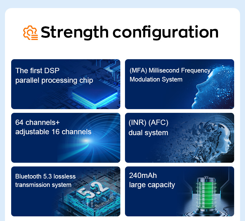 Dual intelligent howling suppression + adaptive ANR environment for smooth, natural listening.
